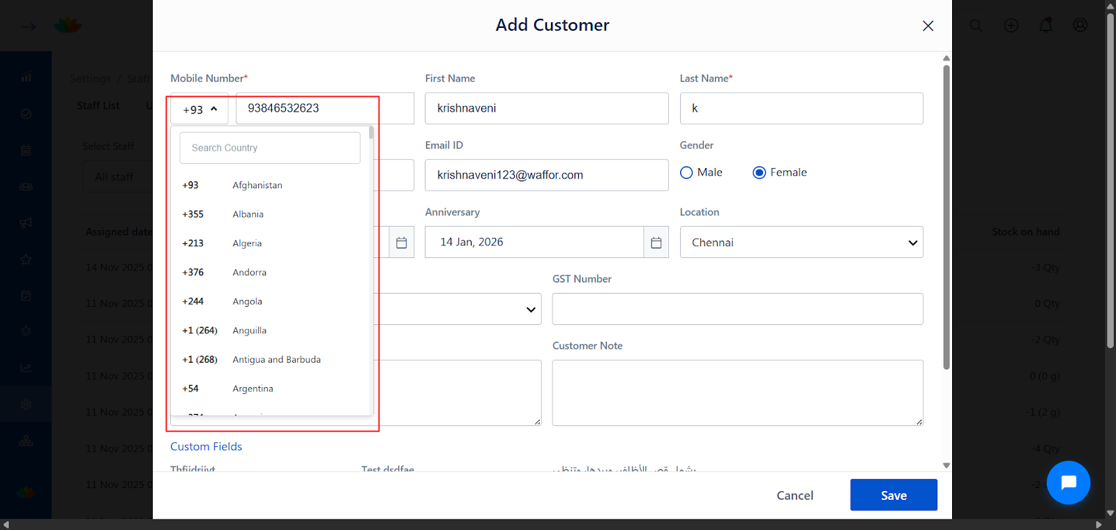 The Global Customer Phone Number Support feature allows you to create and manage customers using other region mobile numbers across all account regions. This enhancement removes region-based restrictions and enables businesses to serve global customers seamlessly.